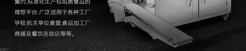 廣泛適用于工廠、學校、機關(guān)單位食堂、食品加工廠、商鋪、餐飲連鎖店等,為個人及相關(guān)企業(yè)提供高速、集約、標準化生產(chǎn)包餡類食品的理想平臺。