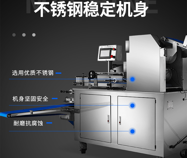◆壓面、成型、出餡、切刀一體化,操作方便,生產(chǎn)效率高,占地面積小。