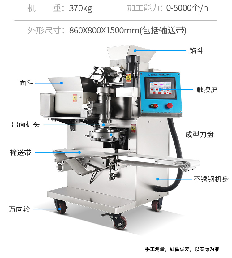 全自動(dòng)包餡機(jī)是制做各種米面制品的設(shè)備,符合有關(guān)食品機(jī)械、食品衛(wèi)生的規(guī)定和要求。它的形制成功,為我國(guó)人民喜歡的傳統(tǒng)米面食品的機(jī)械化大批量生產(chǎn)提供了可靠的設(shè)備。該機(jī)用途廣泛,可制作各式包餡食品,如湯圓、豆沙包、南瓜餅等,是賓館、飯店、企業(yè)、學(xué)校、部隊(duì)等公共食堂和專業(yè)戶理想的面食機(jī)械。