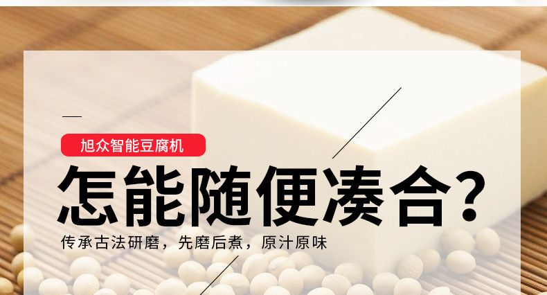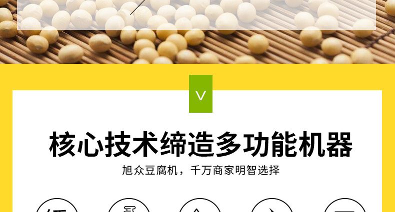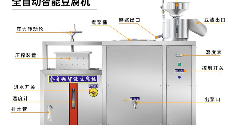 旭眾智能豆腐機(jī)專業(yè)生產(chǎn)數(shù)種豆?jié){制品,穩(wěn)定高效,采用磨漿分離機(jī)和煮漿機(jī),出品率高于其它設(shè)備,擁有自動(dòng)控制系統(tǒng),還增加數(shù)碼溫度控制儀,對煮漿隨時(shí)進(jìn)行監(jiān)控,同時(shí)對不同產(chǎn)品所需溫度自行設(shè)定,當(dāng)煮漿達(dá)到設(shè)定溫度時(shí),具有自動(dòng)提示及報(bào)警功能;整機(jī)采用不銹鋼材質(zhì)制作,質(zhì)量卓越,占地面積小,安裝簡單,工藝先進(jìn),一臺設(shè)備只需一人操作,省時(shí)、省力、省工。
