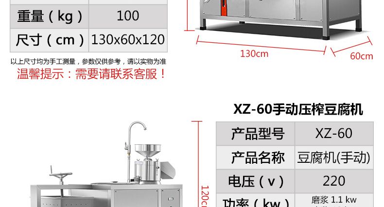 豆腐產(chǎn)量 | 30kg/h | 30kg/h | 50kg/h |