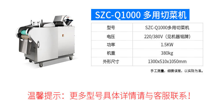 2、切菜規(guī)格可根據(jù)不同需要調(diào)節(jié)尺寸,方便快捷。隨機(jī)共配送三套刀具。
