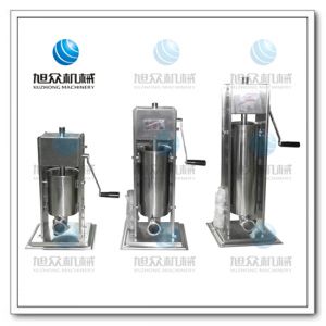 旭眾牌手搖灌腸機(jī)接觸食物的部位全部采用優(yōu)質(zhì)不鋼筋材料,衛(wèi)生、安全;立式設(shè)計(jì),外形美觀、大方。料筒折裝快速,清洗方便;全新的齒輪系統(tǒng),使送料推力,快速、輕便地釋放提升推進(jìn)活塞,工作效率高;此灌腸機(jī)是家用制作香腸或食堂、餐館、酒店專業(yè)制作香腸的理想產(chǎn)品。