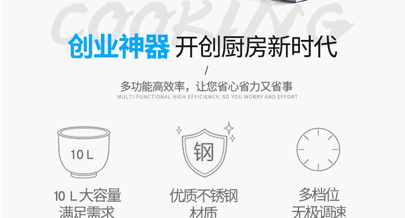 該機(jī)外形美觀、操作方便、工作效率高。既適合于賓館、酒樓、餐館、食品加工廠及單位食堂制作食品,也可供制藥、化工原料等廠礦單位作調(diào)劑原料之用。