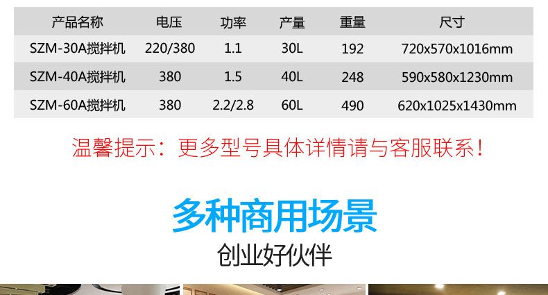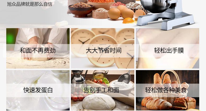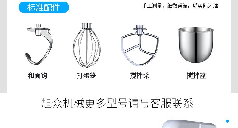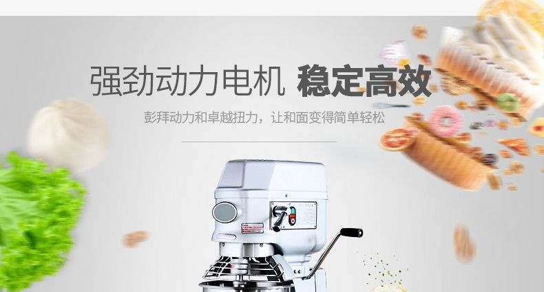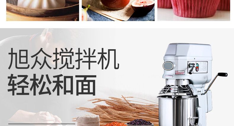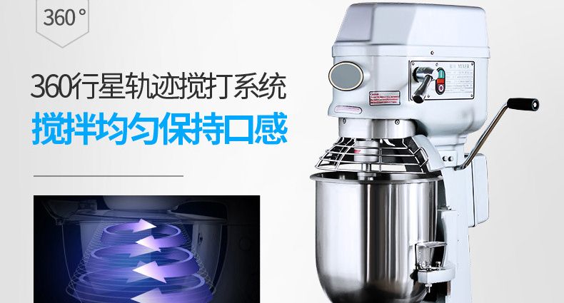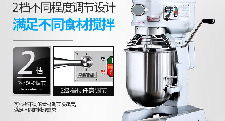 旭眾牌新款A(yù)系列食品攪拌機(jī)運(yùn)用行星運(yùn)動(dòng)原理,攪拌器在料桶內(nèi)做行星運(yùn)動(dòng),從而使食品充分混合,具有和面、攪和碎狀。粉狀及液狀食品等多種功能,機(jī)器工作平穩(wěn),設(shè)有防護(hù)罩,安全可靠,設(shè)有多級(jí)轉(zhuǎn)速,并配有多種攪拌器,用戶可按不同要求選擇適當(dāng)?shù)乃俣群蛿嚢杵?,以?shí)現(xiàn)和面、拌餡、打蛋等功能。機(jī)內(nèi)凡接觸食物的零部件均采用不銹鋼制造或經(jīng)特殊表面處理。符合食品衛(wèi)生標(biāo)準(zhǔn)。