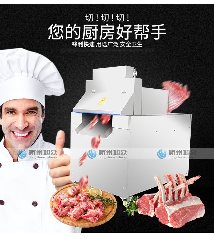 XZL-600自動切骨機適用于小型食品加工廠、屠宰場、肉類加工廠、超市等單位使用。適用于中小型動物骨頭,排骨,冷凍肉,凍雞、凍魚、鮮骨頭、鮮肉等加工設備。切骨機接觸食品的部位及外觀部位均采用不銹鋼或耐腐蝕材料制造,符合食品衛(wèi)生要求。本機設計合理,清洗方便,無損耗,采用特殊刀具切骨,不產生碎骨,較大程度保護了您的利益,且全自動送料,操作簡單,大大的減輕工人勞動強度,提高了安全系數(shù)。不易會傷到手,具有效率高,能耗低,操作安全,外形美觀等特點。