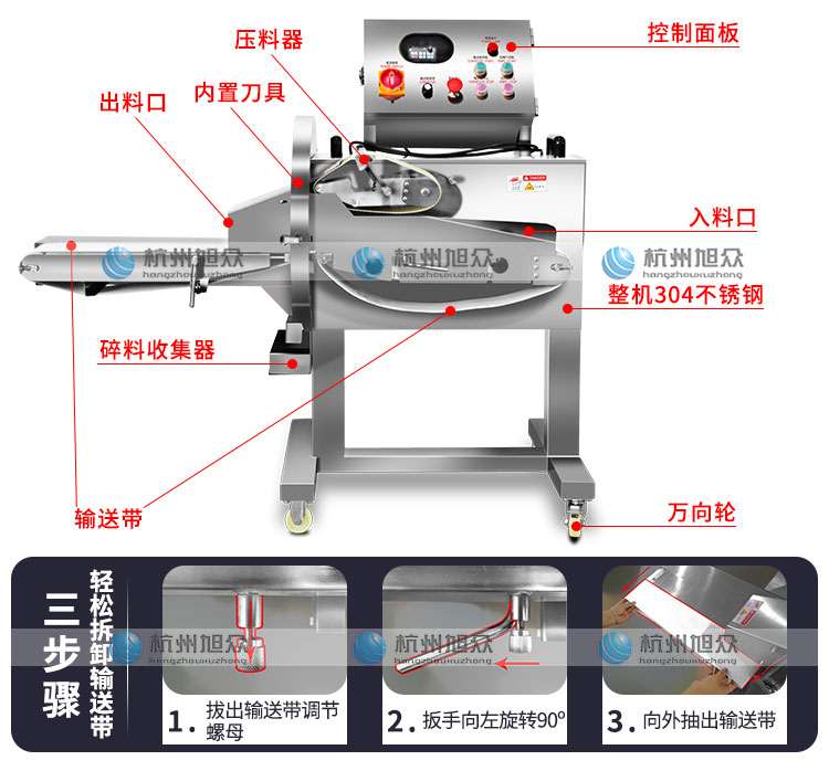 l 出料口自帶輸送帶,切好的物料擺放整齊,無需排列可直接裝盤;