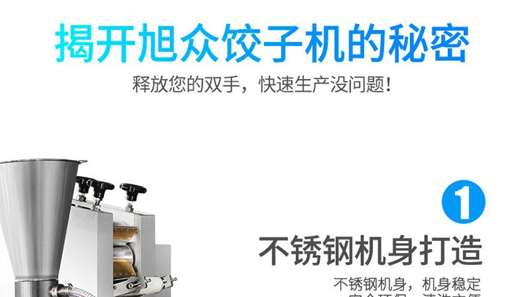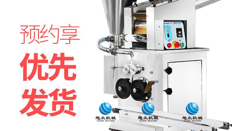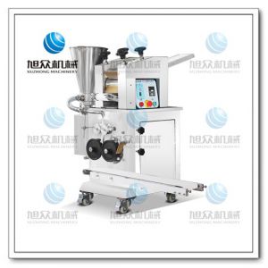 旭眾牌JGB-180型仿手工餃子機是我公司開發(fā)生產的先進的自動餃子生產設備。設備包括主動壓皮部分、自動供餡部分、自動包合成型部分、自動成品輸送部分,并且只要更換模具,就可制鍋貼等食品。