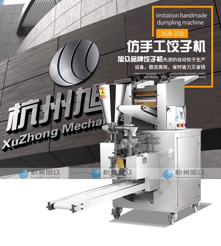 旭眾牌JGB-210型仿手工餃子機是我公司研發(fā)生產(chǎn)的先進自動餃子生產(chǎn)設(shè)備。本機采用自動壓面皮包餃子的新工藝技術(shù),克服了舊式餃子機絞龍強力擠壓而帶來的對面筋的損傷,面團不會發(fā)熱,不會糊化,餃子口感佳。
