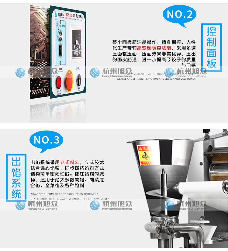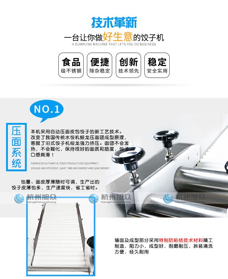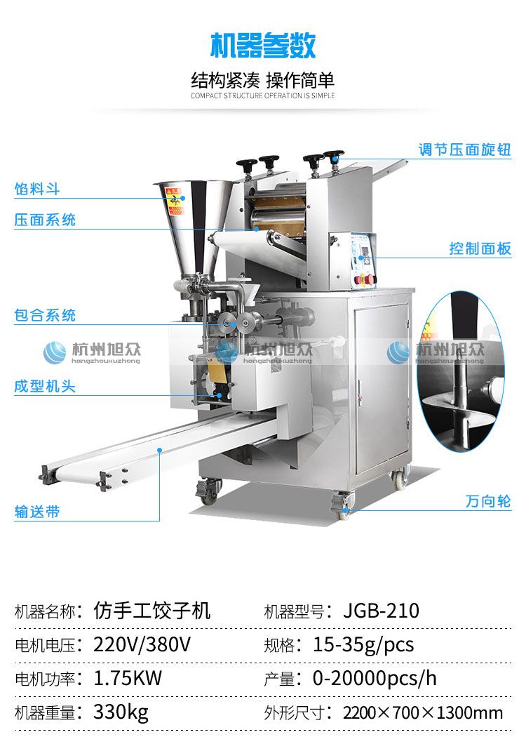 ?餡量、面皮厚薄隨時可調(diào),生產(chǎn)的餃子,皮薄餡滿,生產(chǎn)速度快,省工省時;