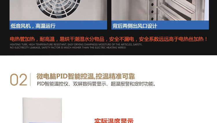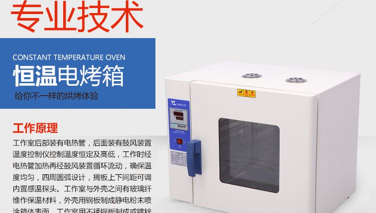 本系列烤箱在工作室后部裝有發(fā)熱管,后面裝有鼓風(fēng)裝置,溫度控制儀控制溫度恒定及高低,工作時經(jīng)發(fā)熱管加熱再經(jīng)鼓風(fēng)裝置循環(huán)流動,確保溫度均勻,四周圓弧設(shè)計,擱板上下間距可調(diào),內(nèi)置感溫探頭。