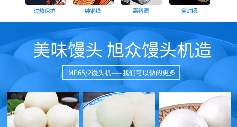 MP65/2型饅頭機(jī),可生產(chǎn)各種饅頭、圓饅頭、光頭饅頭、饃饃等面制品。適用于個(gè)體戶、食品廠、學(xué)校等單位食堂??蓾M足不同客戶群體。免費(fèi)提供工藝技術(shù)。