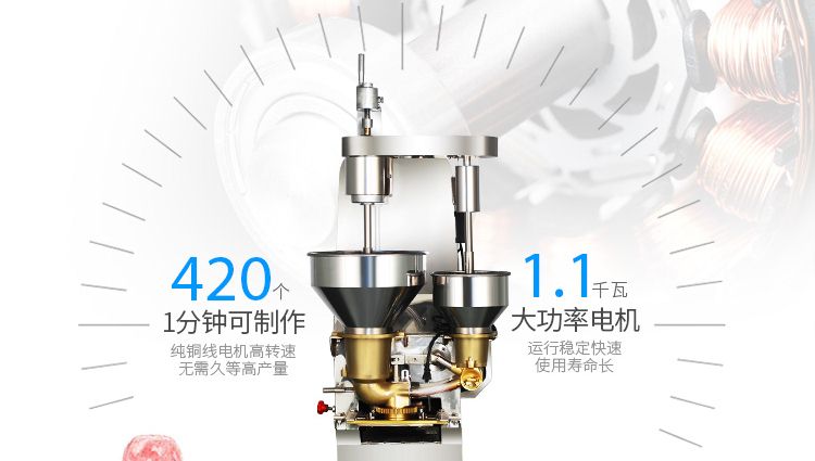 SZ-602包心肉丸機(jī),可生產(chǎn)包心魚丸、包心豬肉丸、撒尿牛肉丸、爆汁小魚丸等多種球形醬湯類包餡產(chǎn)品。操控性強(qiáng)、穩(wěn)定性高、出品率穩(wěn)定;可抽皮增餡,做到皮薄餡多。