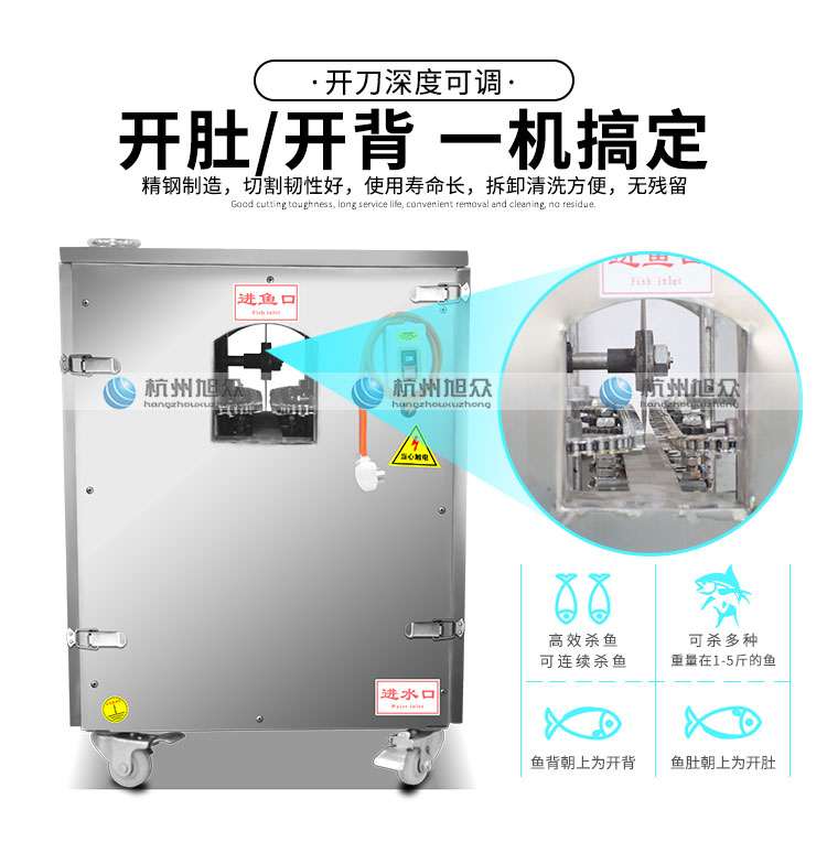 本機整機采用優(yōu)質(zhì)不銹鋼制造,耐磨耐用,符合食品衛(wèi)生標(biāo)準(zhǔn)。把魚放在設(shè)備的入料口,輸送鏈條自動把魚送到切割刀片處將開肚/開背(魚肚朝上放為開肚,魚背朝上放為開背),適用于水產(chǎn)品加工廠,肉類加工廠,魚類罐頭廠,大型餐飲行業(yè)等單位。本產(chǎn)品不會對魚頭、魚尾、魚鰭造成損傷。