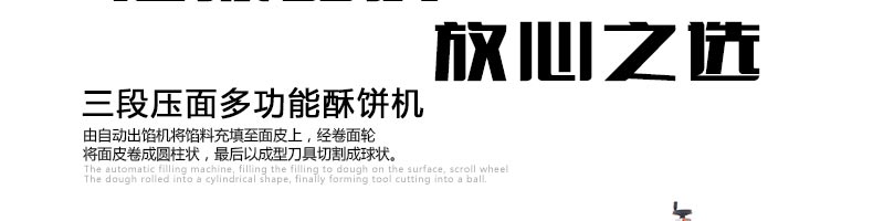 SZ-09C三段壓面酥餅機,生產(chǎn)速度、制品大小、重量、皮餡比例可隨時調整、變更。適用于蘇式月餅、綠豆餅、老婆餅、蔥油餅、鮮花餅、肉松餅、金華酥餅等。適用于大、中型糕餅生產(chǎn)廠家,免費提供工藝技術。