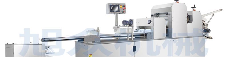 旭眾牌SZ-09C多功能三段酥餅機采用三段漸進式打薄再將面皮壓成合適的厚度。由自動出餡機將餡料充填至面皮上,經(jīng)卷面輪將面皮卷成圓柱狀,最后以成型刀具切割成球狀。長條狀餅胚,整個成形過程不會破壞面皮筋性,保持手工原味。