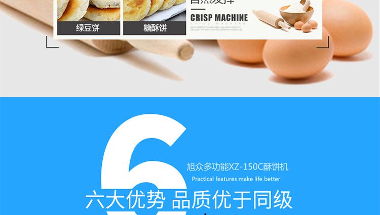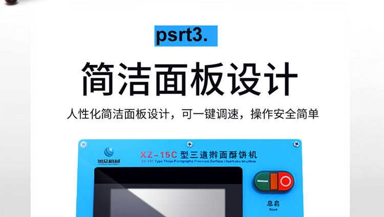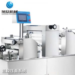 旭眾牌XZ-15C三道搟面酥餅機(jī)是我公司仿手工制作面食產(chǎn)品的機(jī)型,占地面積小,重量輕,它吸收國內(nèi)傳統(tǒng)手工制作技術(shù),即運(yùn)用搟面杖壓面和打擊面團(tuán),以保證高面筋性和面帶的密度,并綜合考慮面食的口感而研發(fā)。