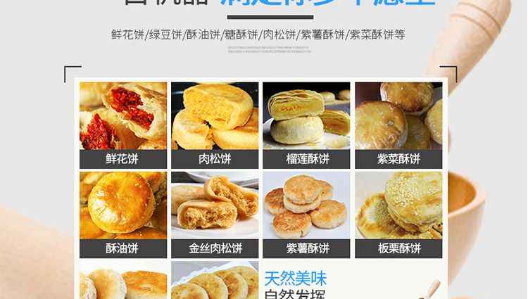 XZ-15C三道搟面酥餅機(jī),仿手工制作面食產(chǎn)品的機(jī)型,占地面積小,重量輕,運(yùn)用搟面杖壓面和打擊面團(tuán),以保證高面筋性和面帶的密度,并綜合考慮面食的口感而研發(fā)。可生產(chǎn)東北糖酥餅,東北大香酥餅,蘇式月餅,芝麻餅,鮮花餅,老婆餅。購機(jī)免費(fèi)提供工藝技術(shù)