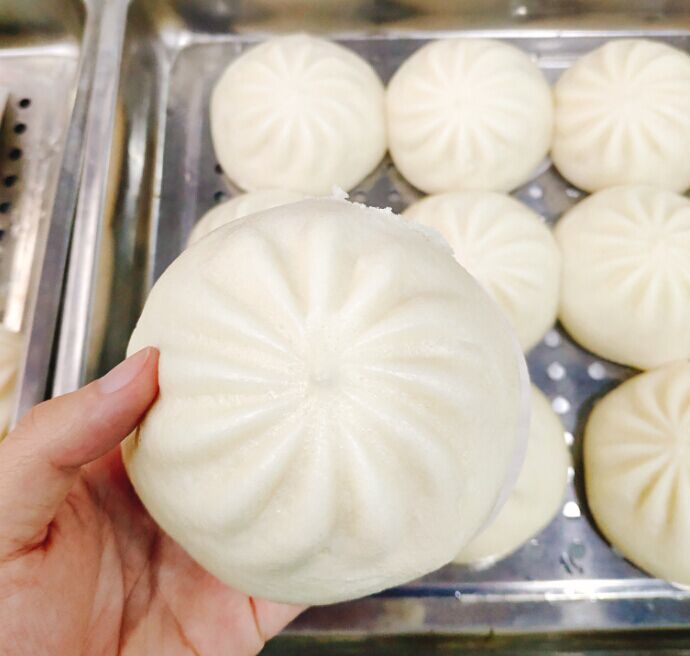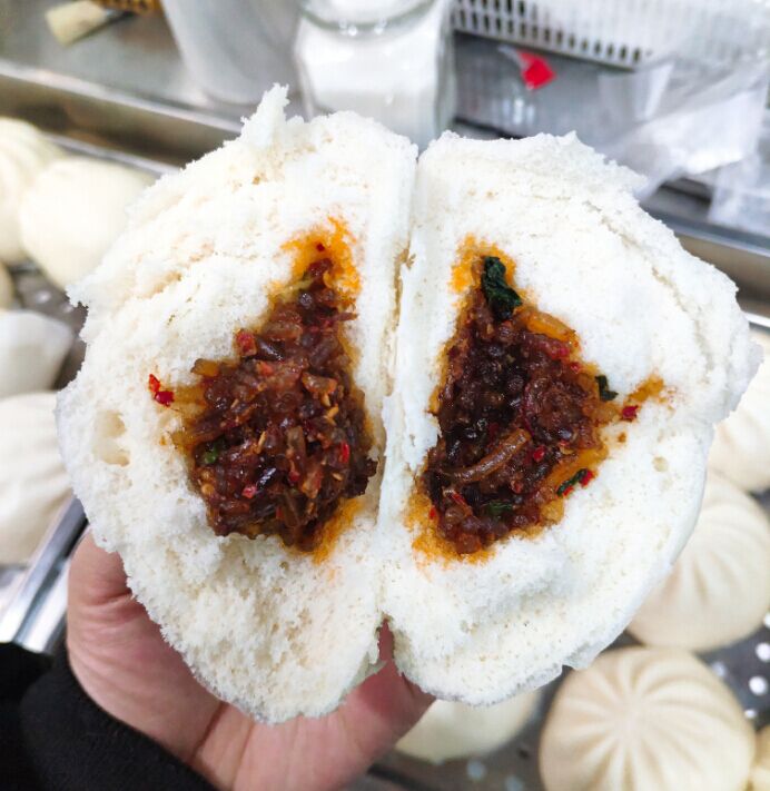 機(jī)器制作香辣粉絲包,先和好面團(tuán)(可手工揉面或和面機(jī)和面),拌好餡料(手動(dòng)拌餡或拌餡機(jī)拌餡),放入包子機(jī)對(duì)應(yīng)的面斗和餡斗中,皮餡比例調(diào)好后開(kāi)啟開(kāi)關(guān)制作成香辣粉絲包子,如下圖: