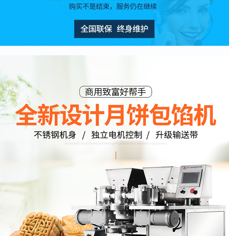 2.餡管更短,管內(nèi)存料少,減小出餡壓力,有效保護(hù)餡料顆粒,使餡料更松散、產(chǎn)品重量、皮餡比例更加穩(wěn)定,適用多種餡料;