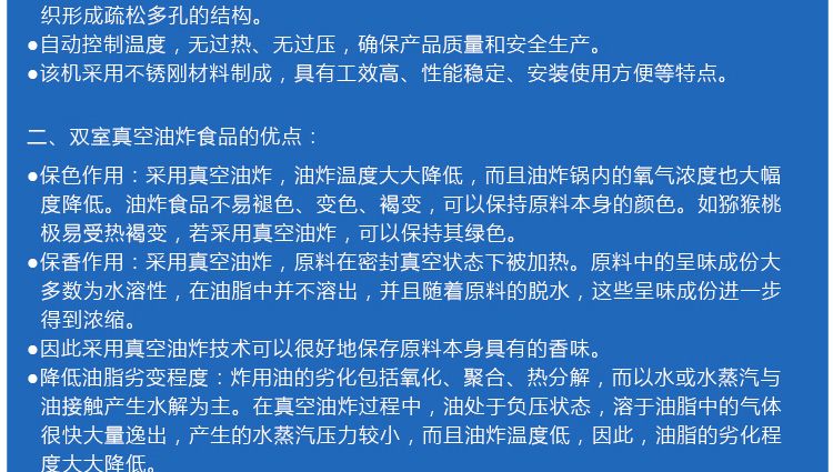 雙室真空油炸食品的優(yōu)點